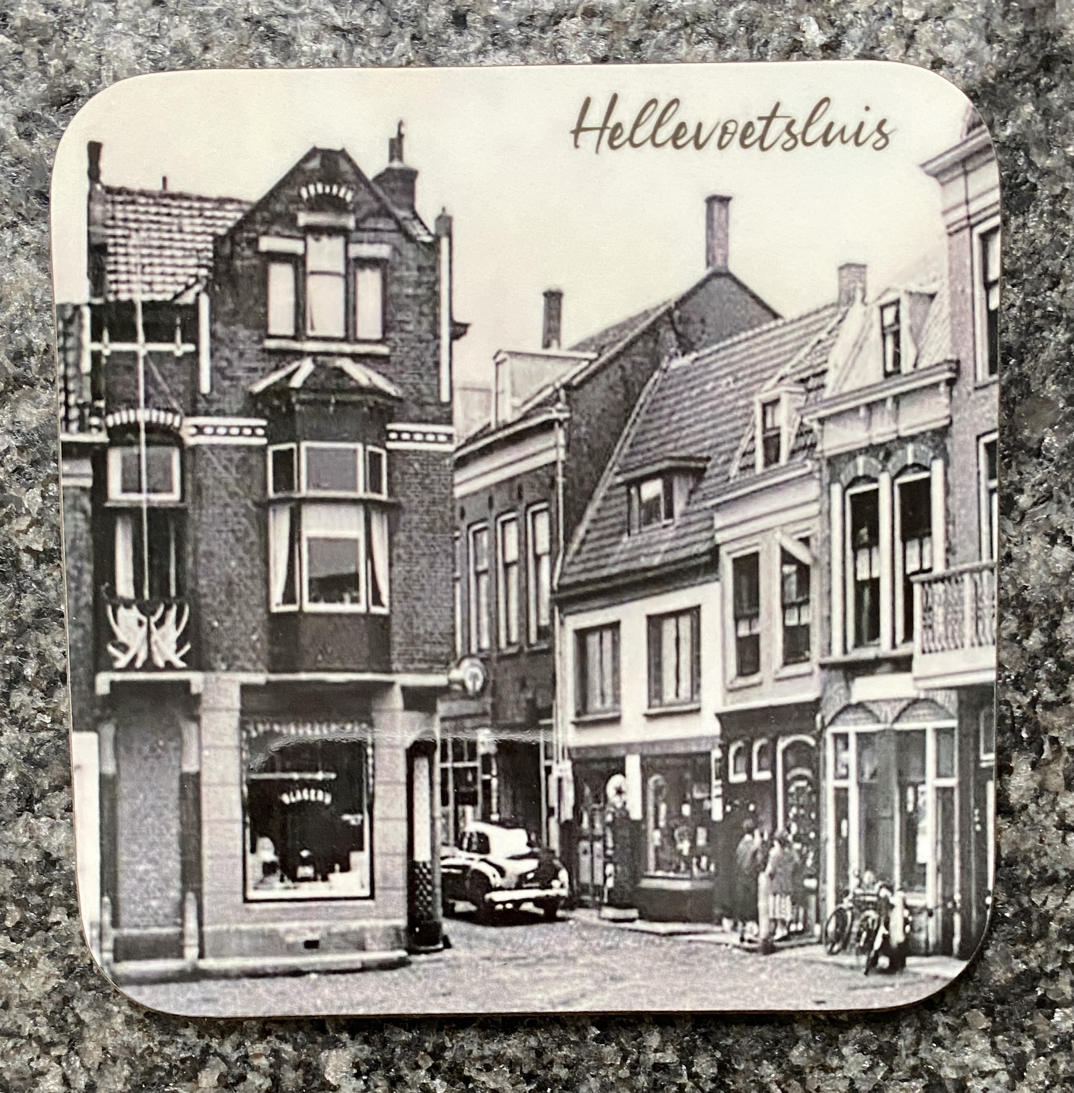 Onderzetter met een afbeelding van Hellevoetsluis in vroeger jaren